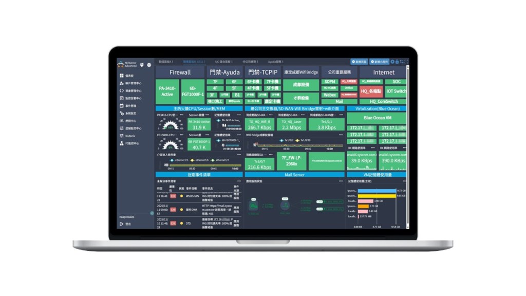面對現代企業IT已發展為實體、虛擬資源與各類應用程式所組成的複雜網路境。NETCenter Advanced結合直覺化操作介面與多品牌整合能力,建立更清晰與即時的問題處理機制,再藉由彈性自定義IT 監控戰情儀表板,讓CIO、CTO管理階層至OP層級皆可從不同視角快速掌握基礎架構效能與資源運行狀態,打造更穩定、高效的 IT 環境。系統同時搭配24小時智慧告警機制與完整事件記錄,可有效分析並解決系統根本問題,強化IT運維效益,並支援多層級權限設定與模組化部署架構,協助企業依需求彈性擴充,打造兼顧資訊安全與ESG的IT監控管理中心!